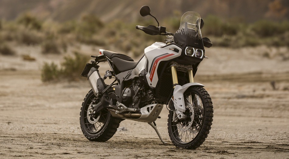 The Matt Star White Silk livery enhances DesertX’s functional design with a clean, technical look. The matte white finish highlights the bike’s robust forms and off‑road character.